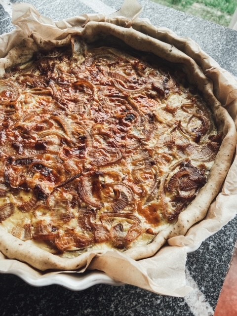 Bon bref, sur ces belles paroles, c’est pas tout ça, mais j’suis pas revenue les mains vides moi. Eh oui, ça faisait un p’tit bail que j’avais envie de faire une tartiche aux oignons. Alors oui, je dis tartiche, parce tarte, t’as pas d’appareil à quiche et quiche pas vraiment parce que en vrai tout le monde dit tarte à l’oignon… donc au final on ne sait pas, on ne sait plus. (En vrai, si là tu as la réf, RESPECT parce que là, j’ai passé un cap !) Je dirais donc une tartiche même si y’a un bébé appareil crème+oeufs donc on est plus sur une quiche mais que nenni. Allons-y pour tartiche ! et que ceux que ça défrise aillent se faire bronzer chez les Grecs. Sur ce, je vous livre la recette ultra simple et rapide ! Même si tu vas forcément pleurer à un moment comme tu peux t’en douter…
